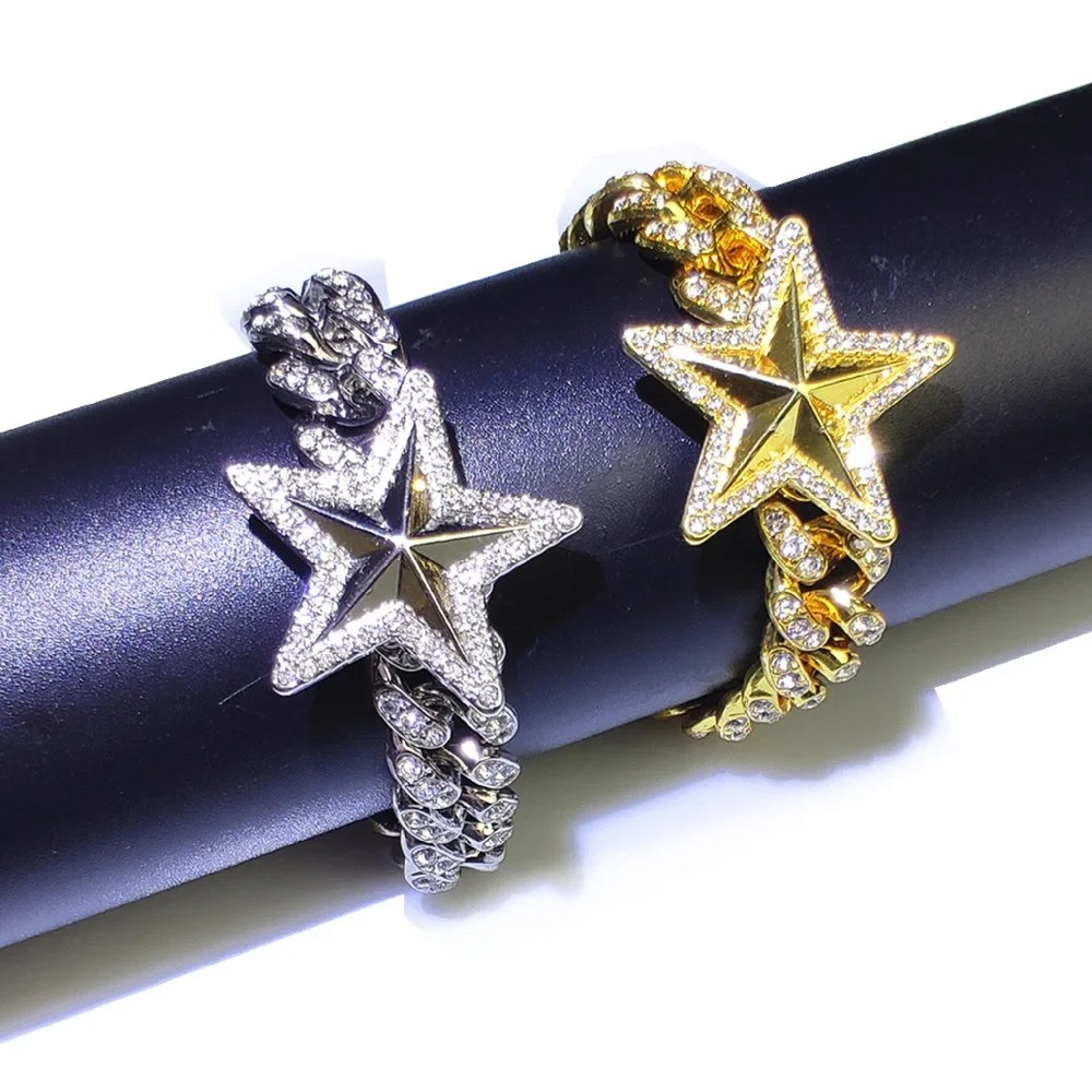 Big David Of Star Charm 12mm Bubble Miami Curb Cuban Chain Hip Hop Bracelet Rapper Gift Rock Men Women Jewelry Rose Gold Color