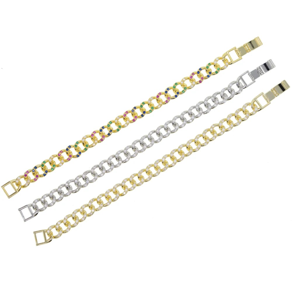hip hop women fashion jewelry colorful iced out bling micro pave white cz bar charm curb Miami Cuban link chain 17cm bracelets