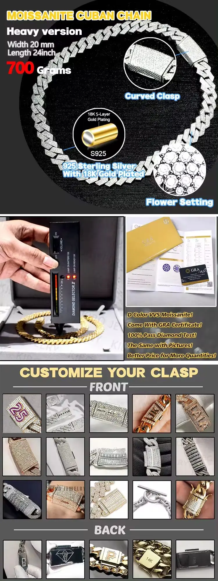 VVS Moissanite D Color ( √ 100% Pass Diamond Tester)Mixed Inlaid Optional : Round / Cushion / Enamel / Heart / Marquise